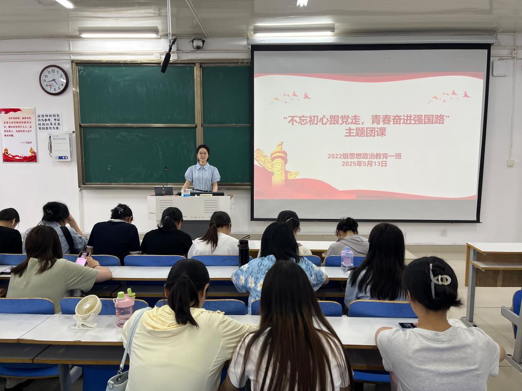 为增强同学们的民族责任感和使命担当,5月13日下午,beat365在线唯一官网2022级思想政治教育一班在社科楼514教室开展“不忘初心跟党走,青春奋进强国路”主题团课,beat3652022级思想政治教育一班全体同学共同参与本次团课,团课由团支书李佳茹主持。