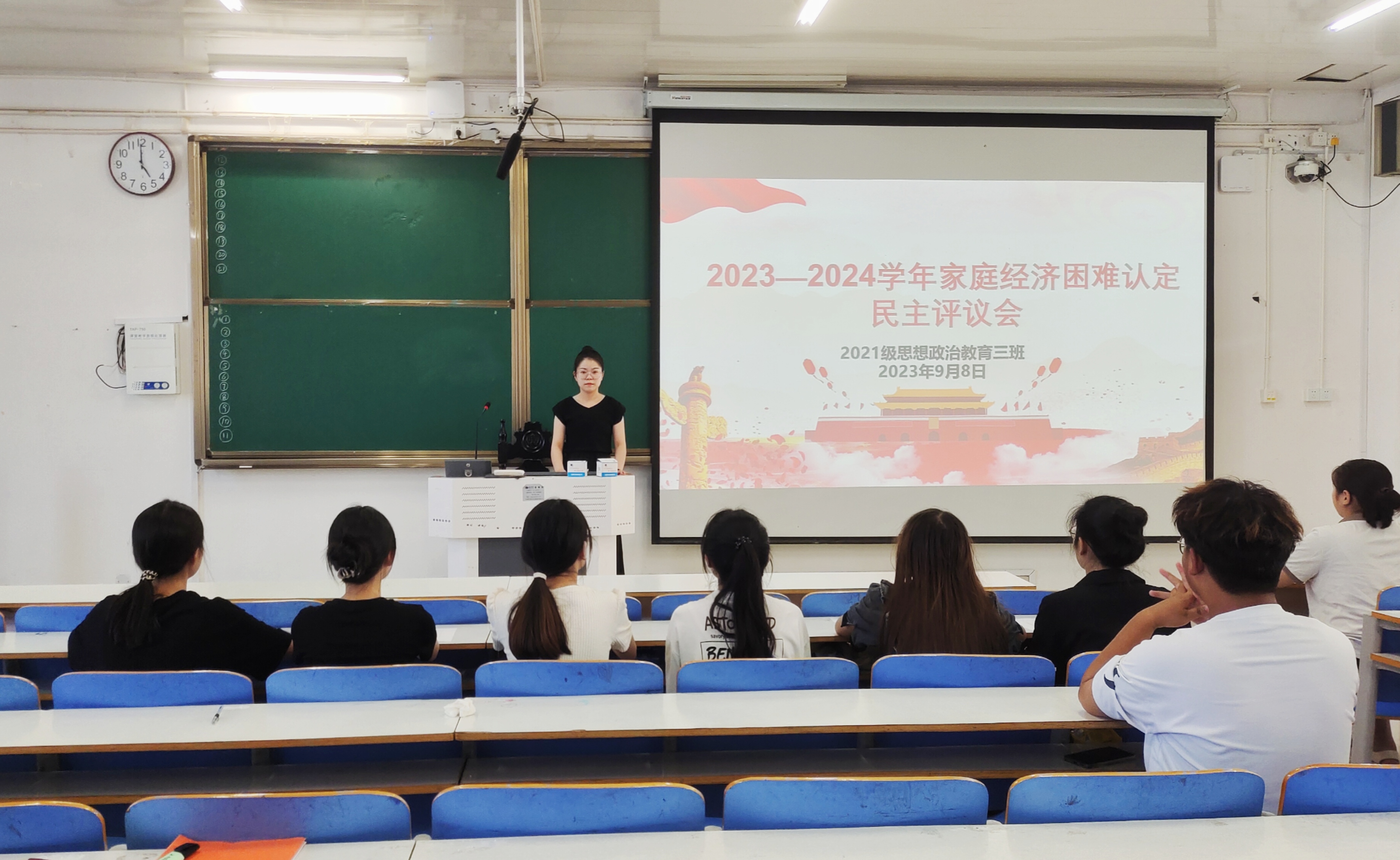9月8日下午,beat365在线唯一官网2021级思想政治教育三班在社科楼514教室召开2023—2024学年家庭经济困难认定民主评议会。高小佳老师、2021级思想政治教育三班贫困认定委员团全体成员以及权益保障部靳澍畅、宣传委员陈笑宇、组织委员秦梦莹参与此次会议。会议由辅导员高小佳主持。