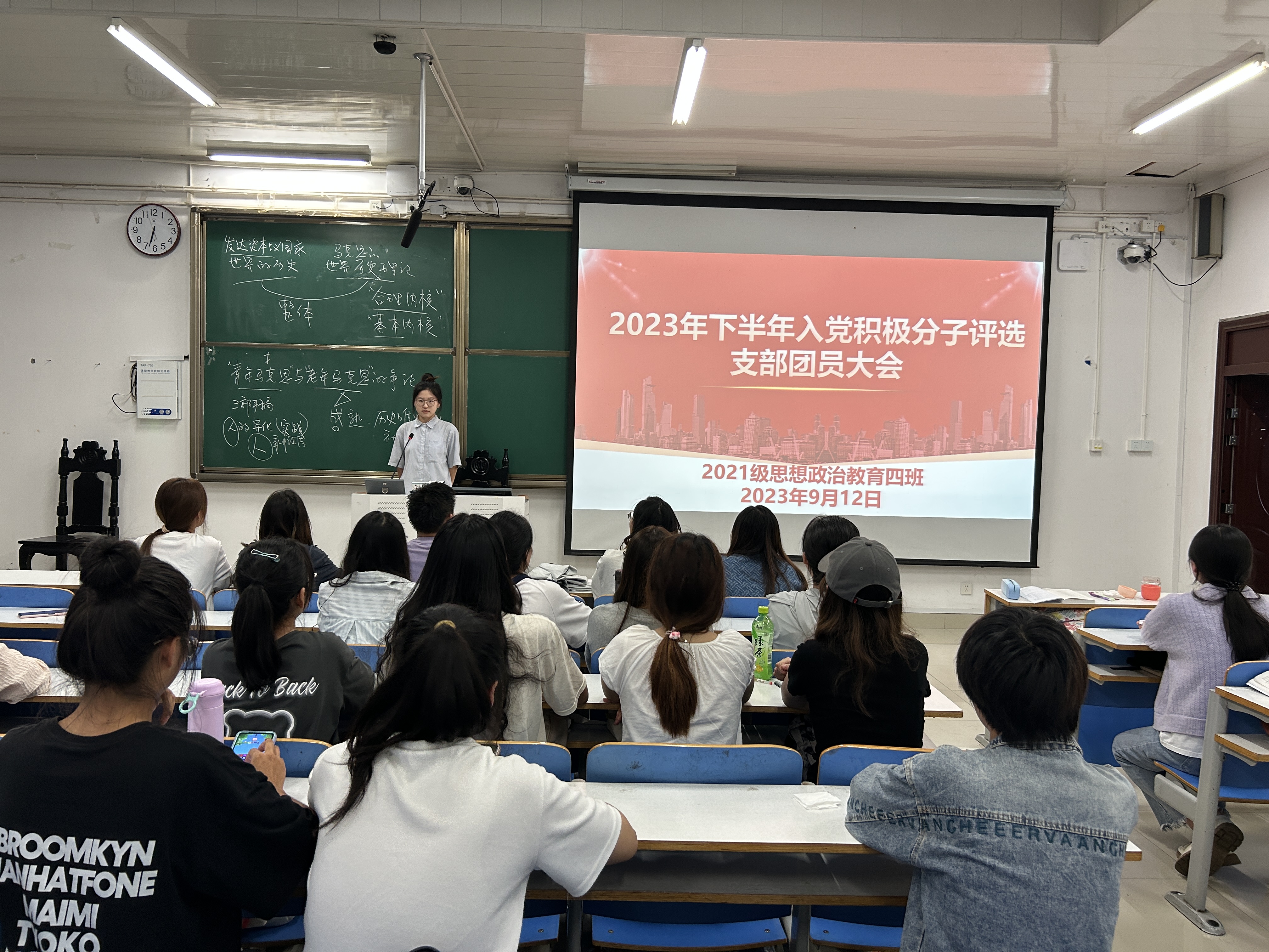 9月12日下午,beat365在线唯一官网2021级思想政治教育四班在社科楼515教室召开入党积极分子评选支部大会。2021级思想政治教育四班全体团员共同参会。会议由团支书刘珂含主持。