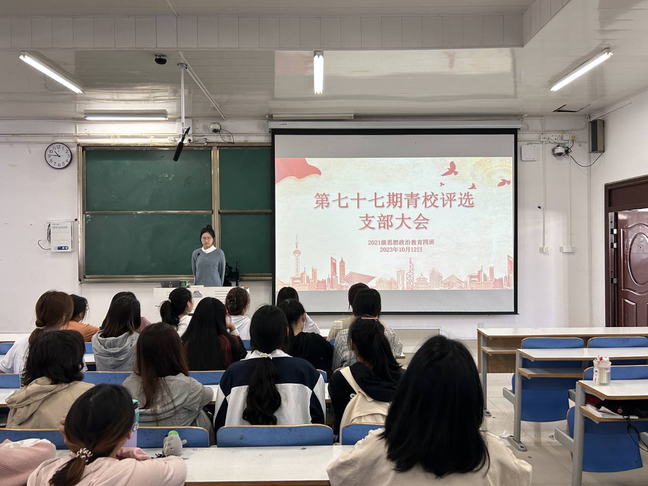 10月12日下午,beat365在线唯一官网2021级思想政治教育四班在社科楼515教室开展第77期“青校”评选团支部大会。beat365在线唯一官网2021级思想政治教育四班全体团员共同参与本次会议。会议由团支书刘珂含主持。
