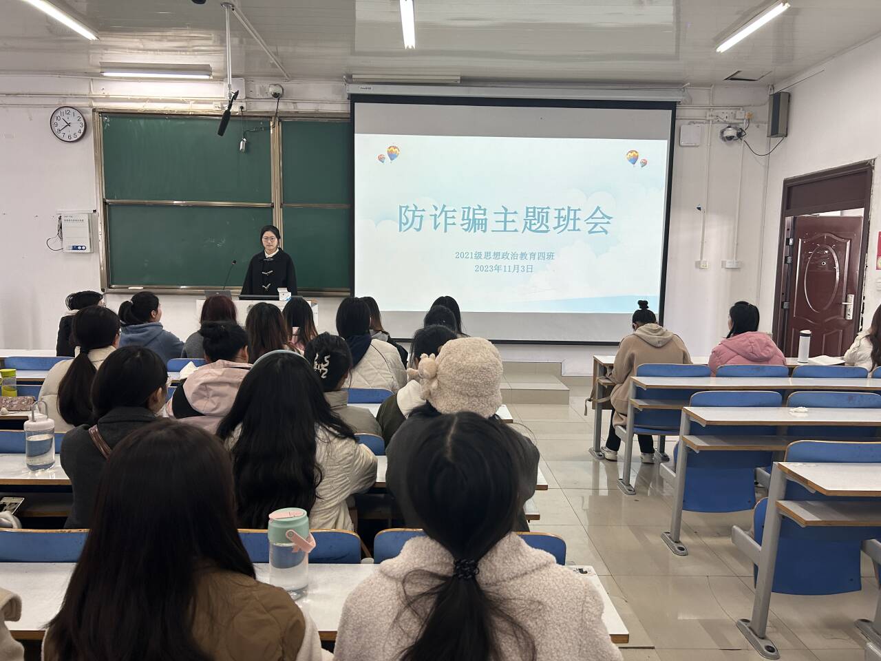 11月3日上午,beat365在线唯一官网2021级思想政治教育四班在社科楼515教室开展防诈骗主题班会。2021级思想政治教育四班全体学生共同参加本次班会。班会由团支书刘珂含主持。