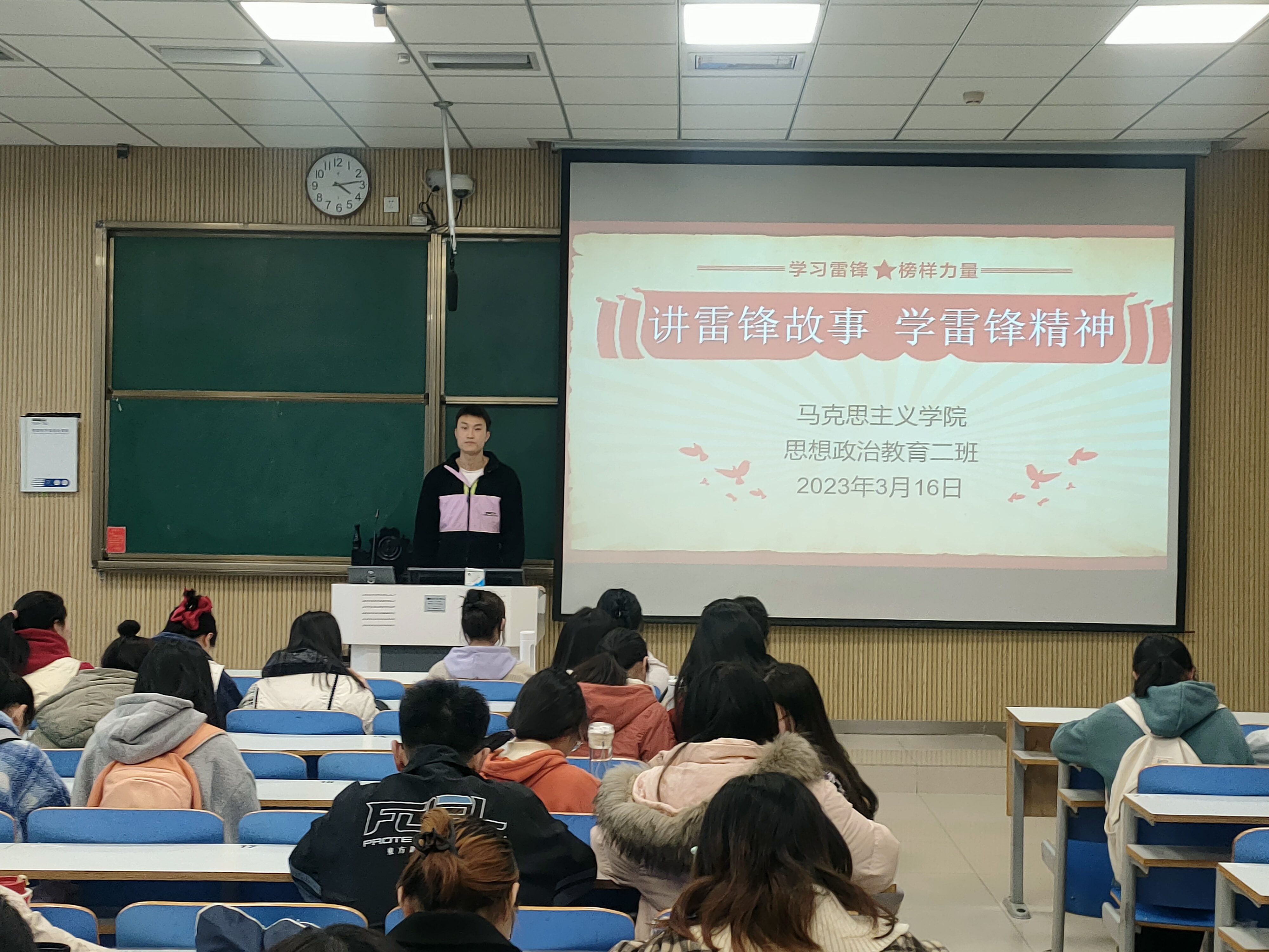 为引导我班团员积极学习并践行雷锋精神,3月16日下午,beat365在线唯一官网2020级思想政治教育二班、定向二班团支部在社科楼515教室开展“讲雷锋故事,学雷锋精神”主题团课。二班、定向二班全体团员共同参与本次团课。团课由团支书陈宇航主持并讲授。