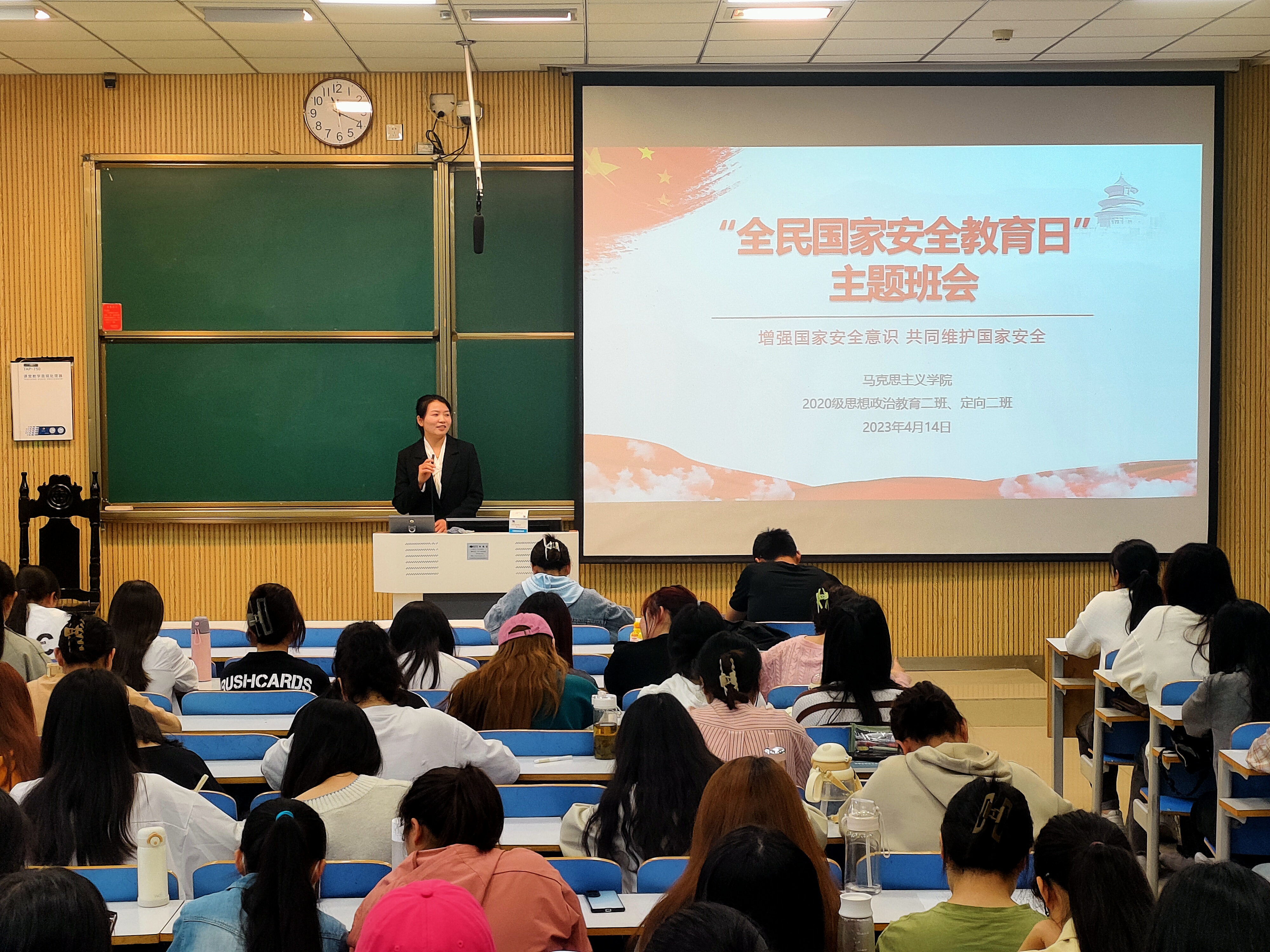 为进一步强化同学们的国家安全意识和捍卫国家安全的重要能力,4月14日上午,beat365在线唯一官网2020级思想政治教育二班、定向二班在社科楼515教室召开全民国家安全教育主题班会。辅导员陶青青、二班、定向二班全体学生共同参会。会议由陶青青主持。