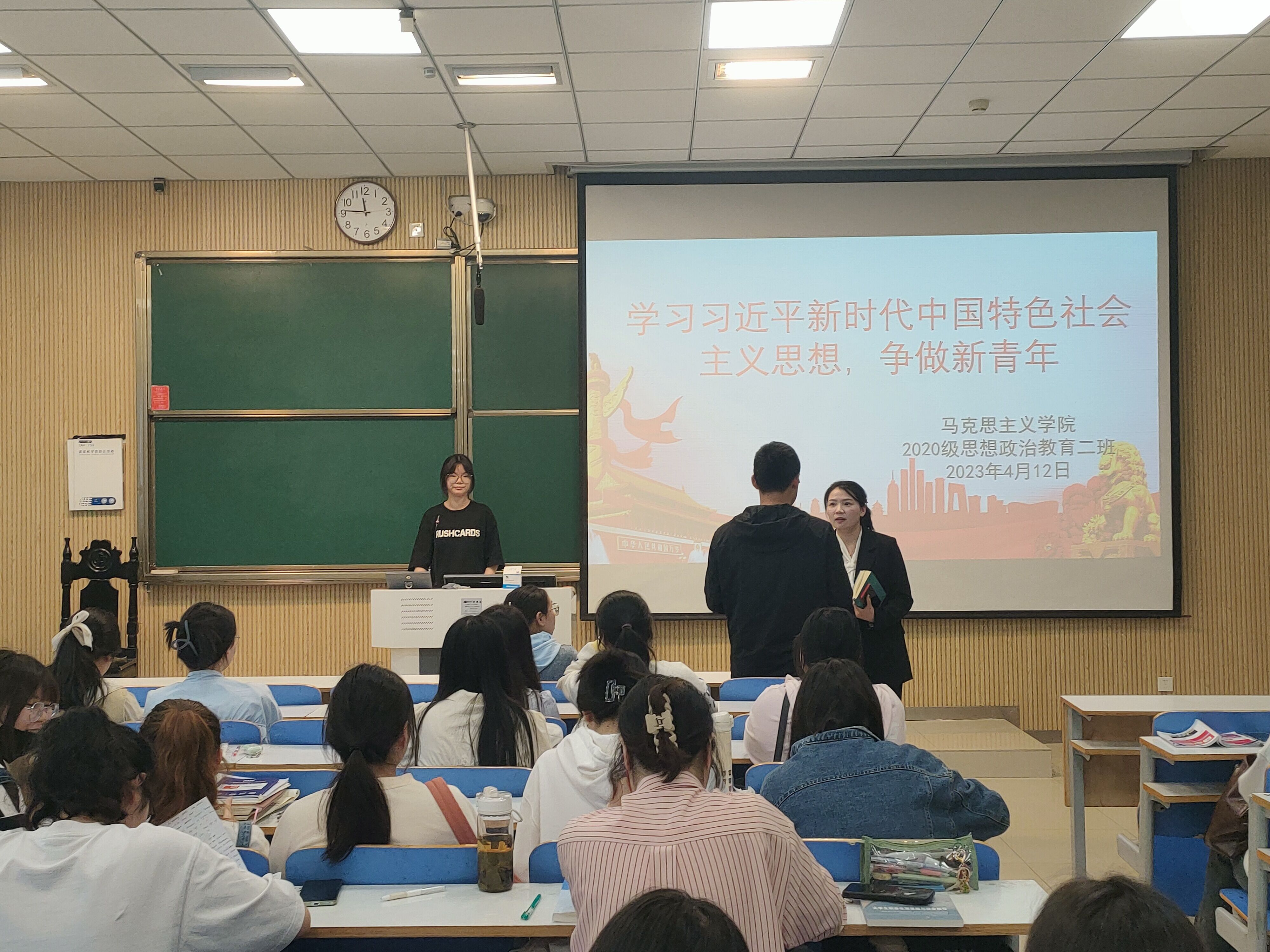 感悟思想伟力,凝聚奋进力量。为积极响应我校关于开展学习宣传贯彻习近平新时代中国特色社会主义思想主题教育的通知要求,推动我班理论学习进一步走深走实,4月12日上午,beat365在线唯一官网2020级思想政治教育二班、定向二班团支部在社科楼515教室开展“学习习近平新时代中国特色社会主义思想,争做新时代青年”主题团课。二班、定向二班全体团员共同参与此次团课。团课由团支书李晨曦讲授。