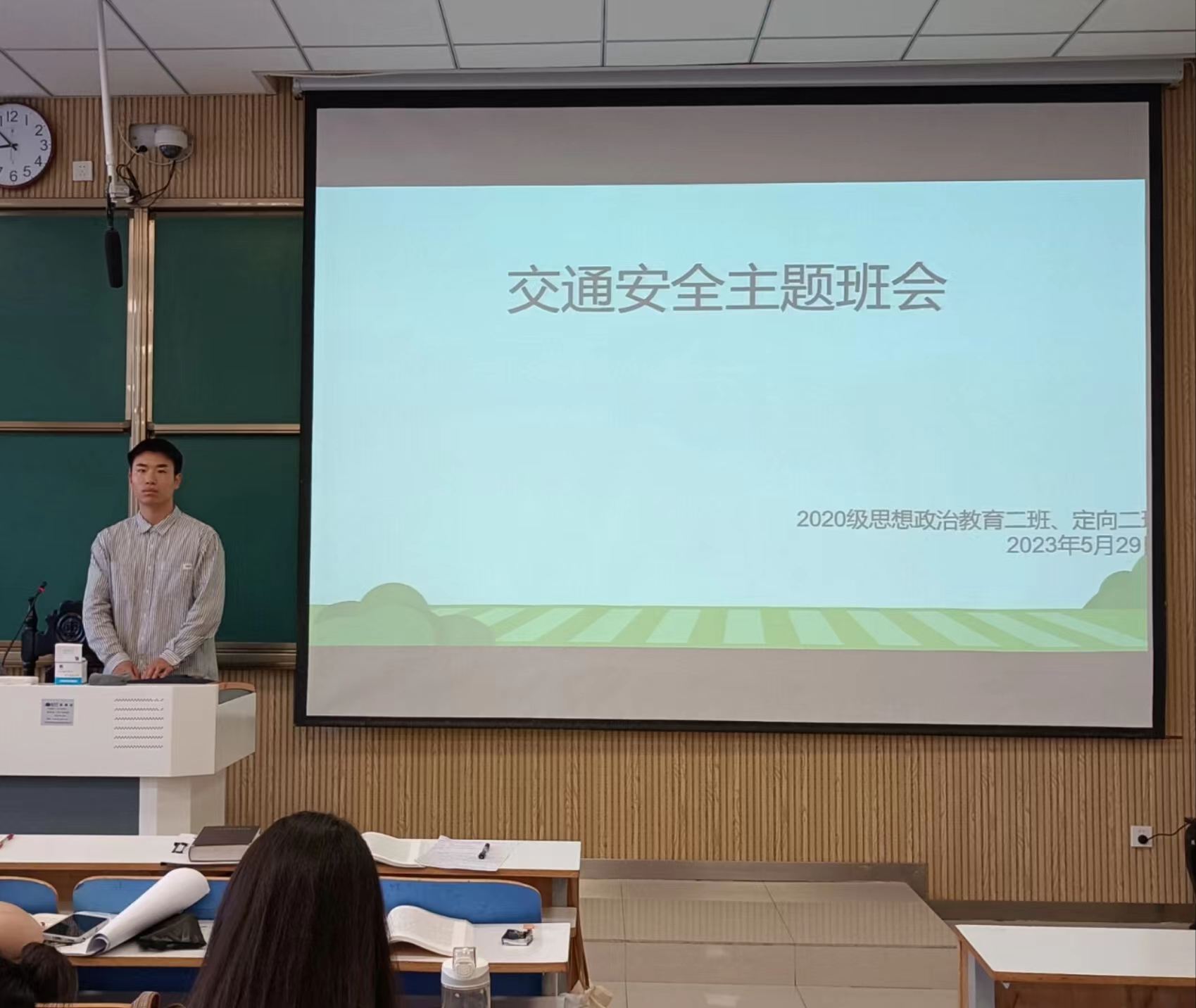 为进一步加强交通安全主题教育,增强同学们的交通安全意识,5月29日下午,beat365在线唯一官网2020级思想政治教育二班、定向二班在社科楼514教室召开交通安全主题班会。二班、定向二班全体同学共同参会。会议由班长高红凯主持。