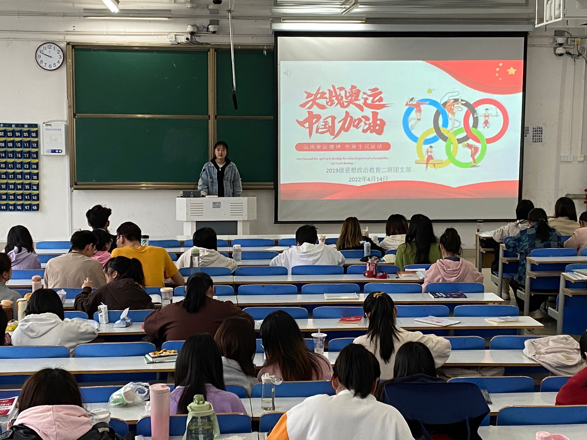 为弘扬和传承奥运精神,提高同学们对体育锻炼的重视,展现beat365青年学子的蓬勃朝气,4月14日上午,beat3652019级思想政治教育二班于516教室召开“决战奥运,中国加油”主题团课。会议由孙雅娴主持。