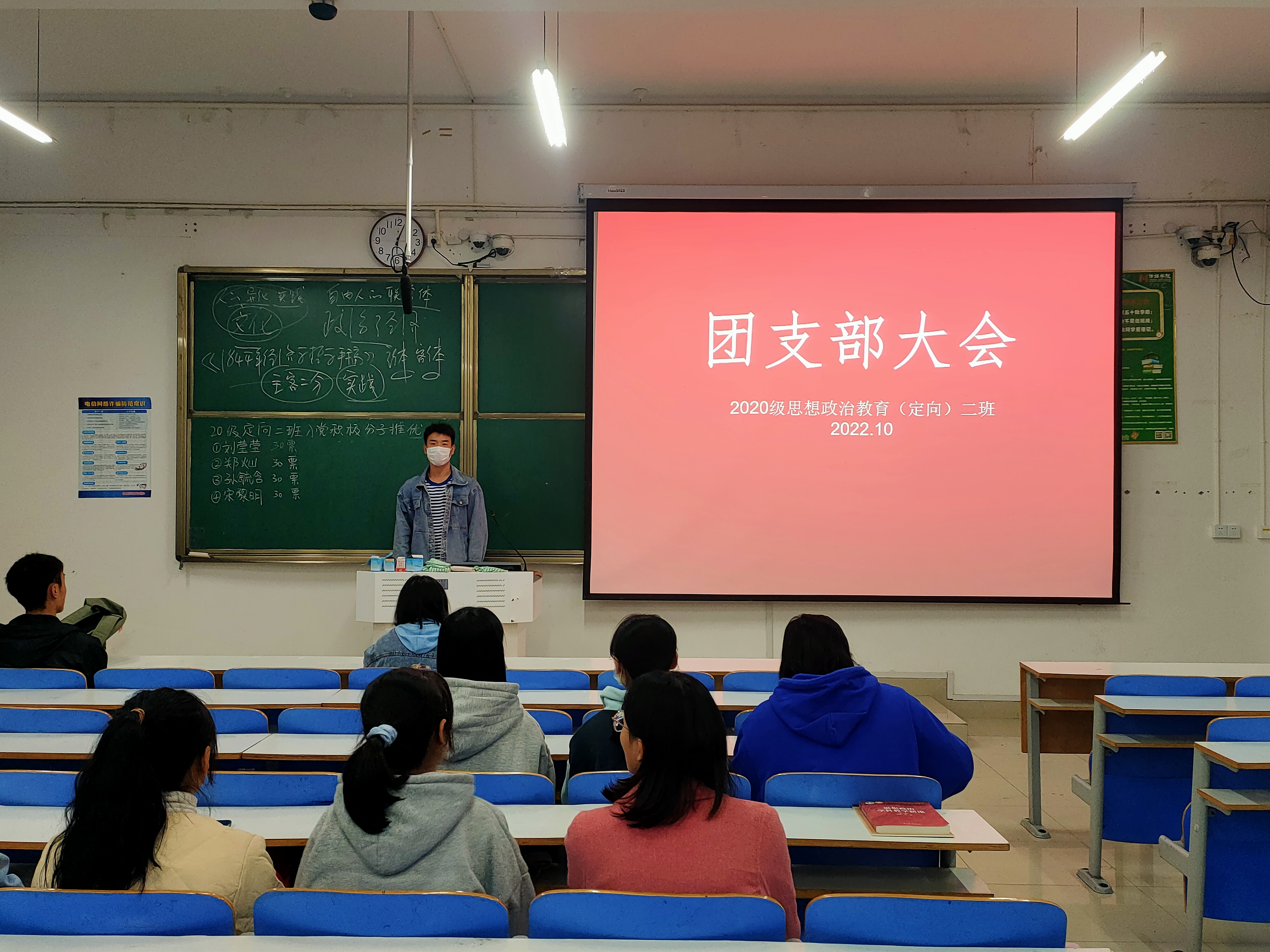 10月10日下午,beat365在线唯一官网2020级思想政治教育定向二班团支部在社科楼324教室召开2022年下半年入党积极分子推优大会。我支部全体团员参与会议。大会由班长高红凯主持。