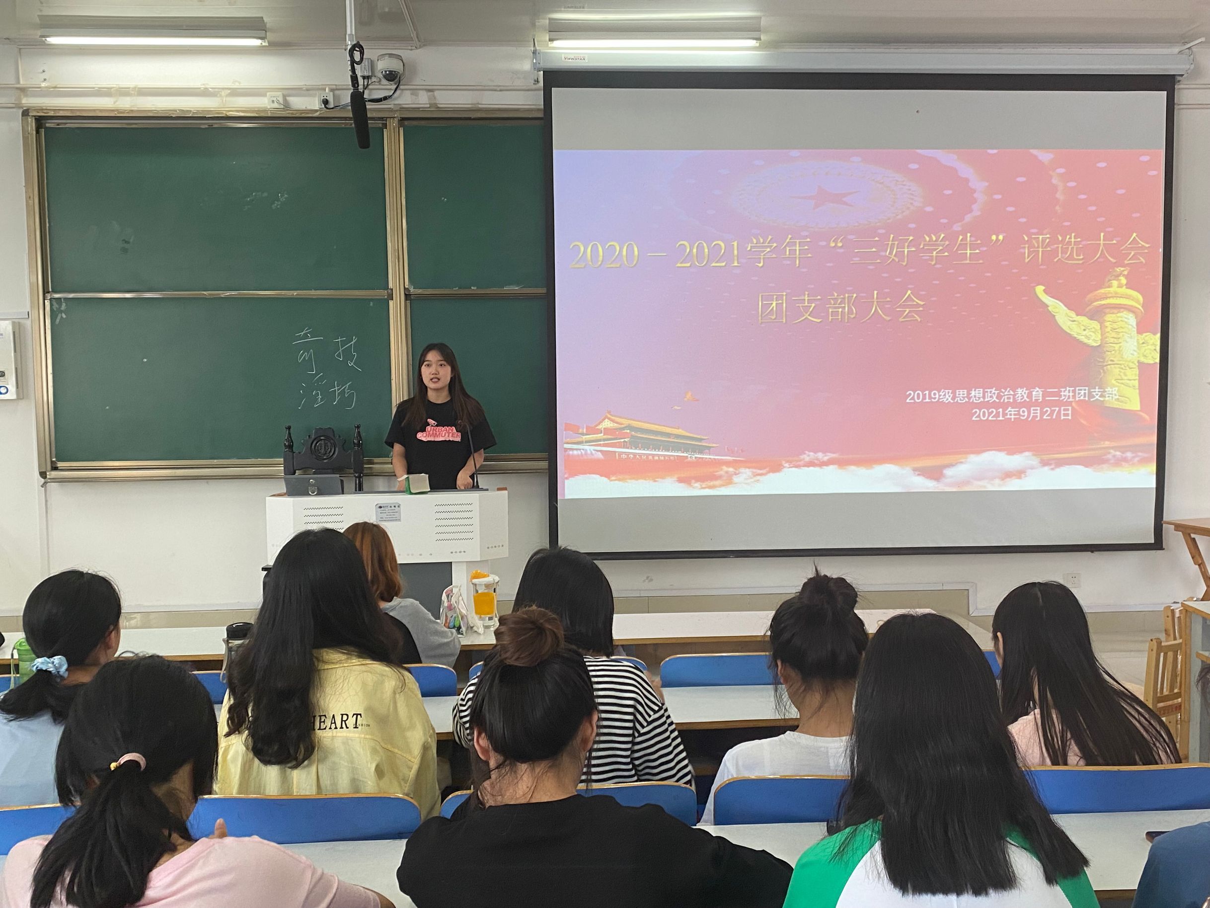 9月27日下午,beat365在线唯一官网2019级思想政治教育二班团支部2020-2021学年“三好学生”、“优秀班干部”评选活动于社科院514教室顺利开展。2019级思想政治教育二班全体成员共同参与本次会议。本次会议由团支书孙雅娴主持。
