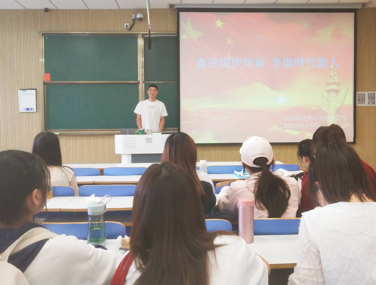为纪念祖国七十一年华诞,激发同学们的爱国奉献精神,9月29日——10月8日,beat3652018级思想政治教育二班开展了“弘扬核心价值观,展现青年担当”建国七十一周年主题团日活动。beat3652018级思想政治教育二班全体成员共同参加了本次活动。活动由班长杨康、团支书黄子晋主持。