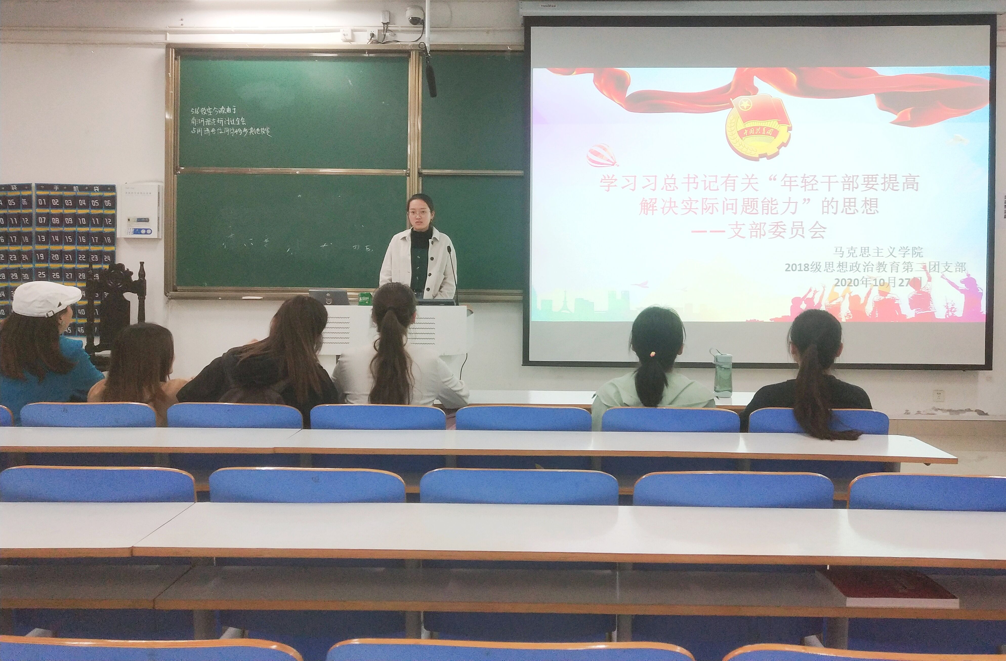 10月27日上午,beat3652018级思想政治教育第二团支部在社科楼516教室顺利召开主题为“学习习近平总书记有关‘年轻干部要提高解决实际问题能力’的思想”支部委员会。本次会议由团支部书记黄子晋主持。