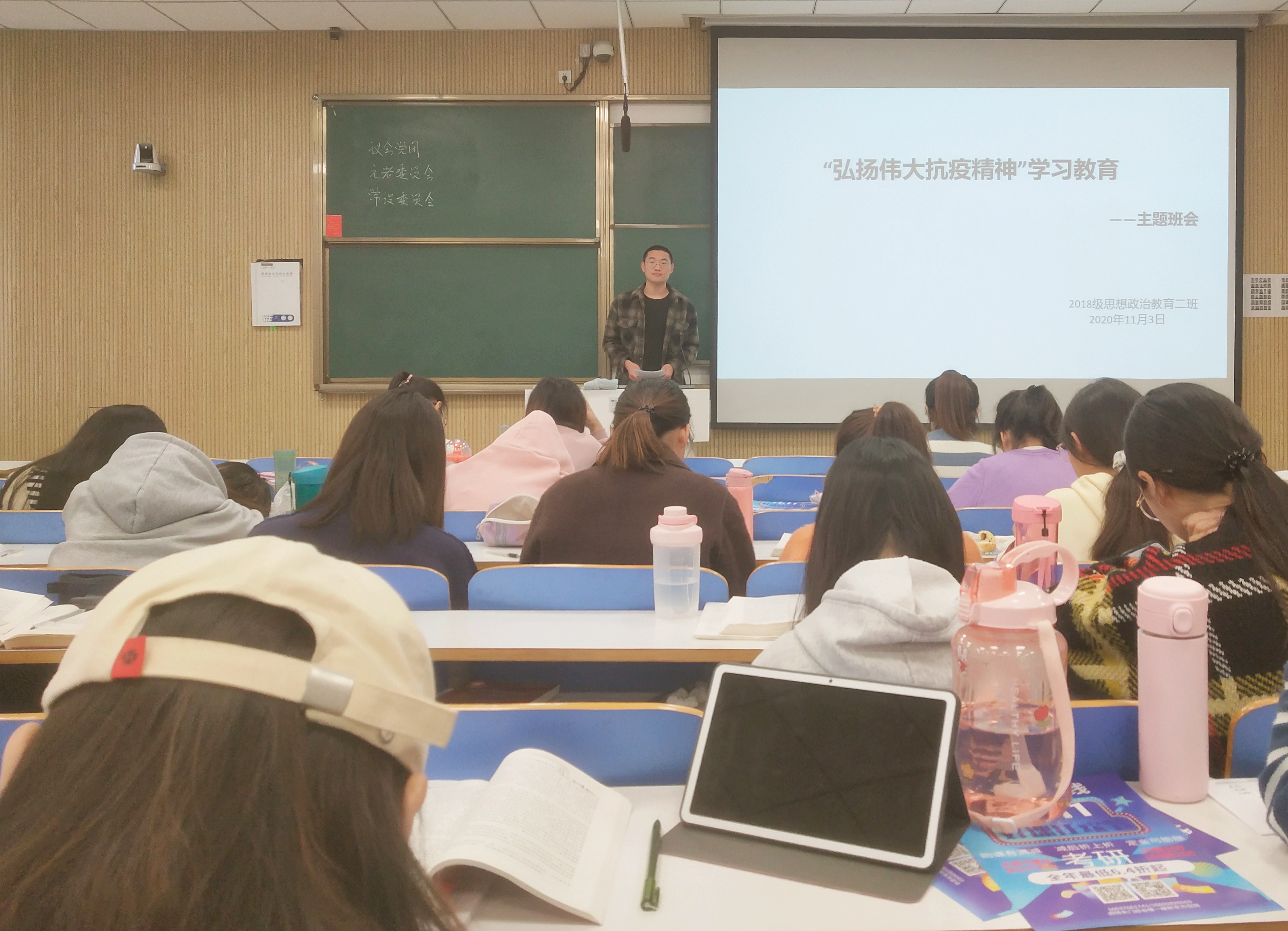 11月3日上午,beat3652018级思想政治教育二班在社科楼515教室顺利开展主题为“弘扬伟大抗疫精神”学习教育主题班会。会议由班长杨康主持。