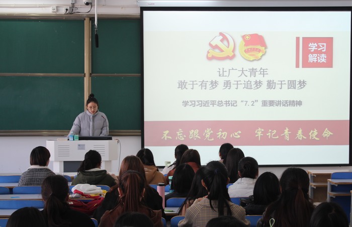 首先,李明瑶带领同学们学习了解习近平总书记7·2讲话的内容,“中共中央总书记、国家主席、国家军委主席习近平7月2日在中南海同团中央新一届领导班子集体谈话并发表重要讲话,他强调,青年一代有理想,有本领,有担当,国家就有前途,民族就有希望”。她讲到“7·2讲话,习近平总书记强调了要抓好三个根本性问题:必须把培养社会主义建设者和接班人作为根本任务、把巩固和扩大党执政的青年群众基础作为政治责任、把围绕中心服务大局作为主线,习总书记强调青年工作,抓住的是当下,传承的是根脉,面向的是未来,攸关党和国家前途命运。各级党委要关注关心青少年成长,为他们成长成才、施展才华创造良好条件。各级党委要拿出极大精力抓青年工作、抓共青团工作,切实尽到领导责任”。听完习总书记的讲话,同学们感受到作为一名青年的自豪感与责任感,感受到习近平总书记对青年所寄予的希望,定会以坚定的信念指引自身,不忘初心跟党走,牢记青春使命。(beat365在线唯一官网 黄文博 /供稿)