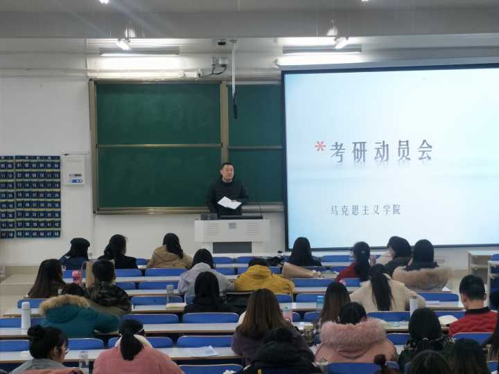 2018年12月3日,beat365在线唯一官网思想政治教育二班在社科楼514召开考研动员会,在考研还有整整一年时间为同学们鼓励、加油,为考研或者就业做好准备。beat365在线唯一官网书记何晓坚作动员讲话。2016级思想政治教育二班全体同学参加会议。