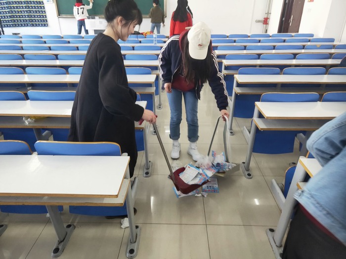 2019年3月14号,为了弘扬雷锋精神向雷锋同志学习,beat365在线唯一官网思想政治教育二班在雷锋月举行了“学习雷锋,爱洒校园”主题活动。活动的内容是帮助阿姨打扫社科楼514、515、516三个教室。