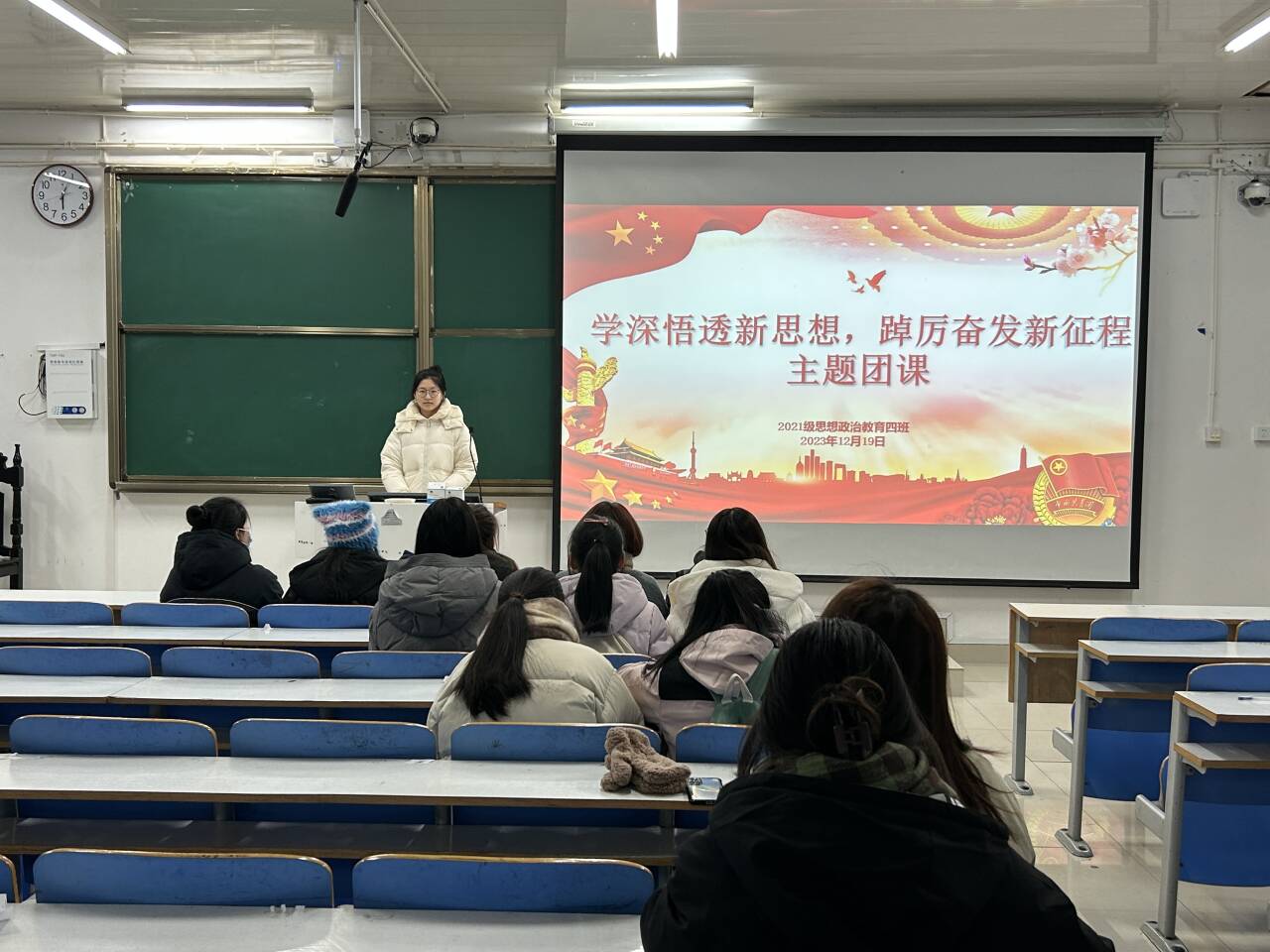 12月19日上午,beat365在线唯一官网2021级思想政治教育四班在社科楼514教室开展“学深悟透新思想,踔厉奋发新征程”主题团课。2021级思想政治教育四班全体学生共同参加本次团课。团课由团支书刘珂含主持。