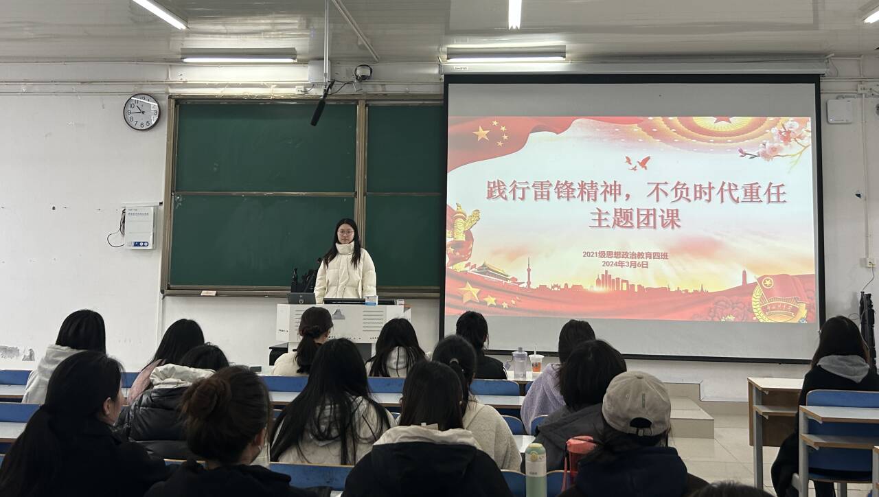 为大力弘扬雷锋精神,传承雷锋艰苦朴素的优良作风,3月6日上午,beat365在线唯一官网2021级思想政治教育四班在社科楼514教室开展“践行雷锋精神,不负时代重任”主题团课。2021级思想政治教育四班全体成员共同参加本次团课,团课由团支书刘珂含主持。