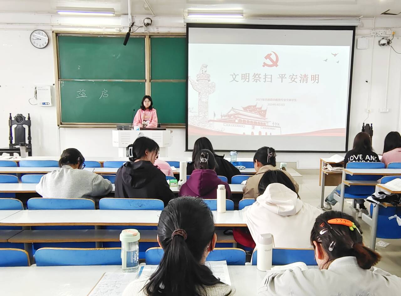 4月3日上午,beat365在线唯一官网2021级思想政治教育全体学生在社科楼514教室召开“文明祭扫,平安清明”主题班会。beat365在线唯一官网2021级思想政治教育全体学生参与此次会议。会议由辅导员高小佳主持。