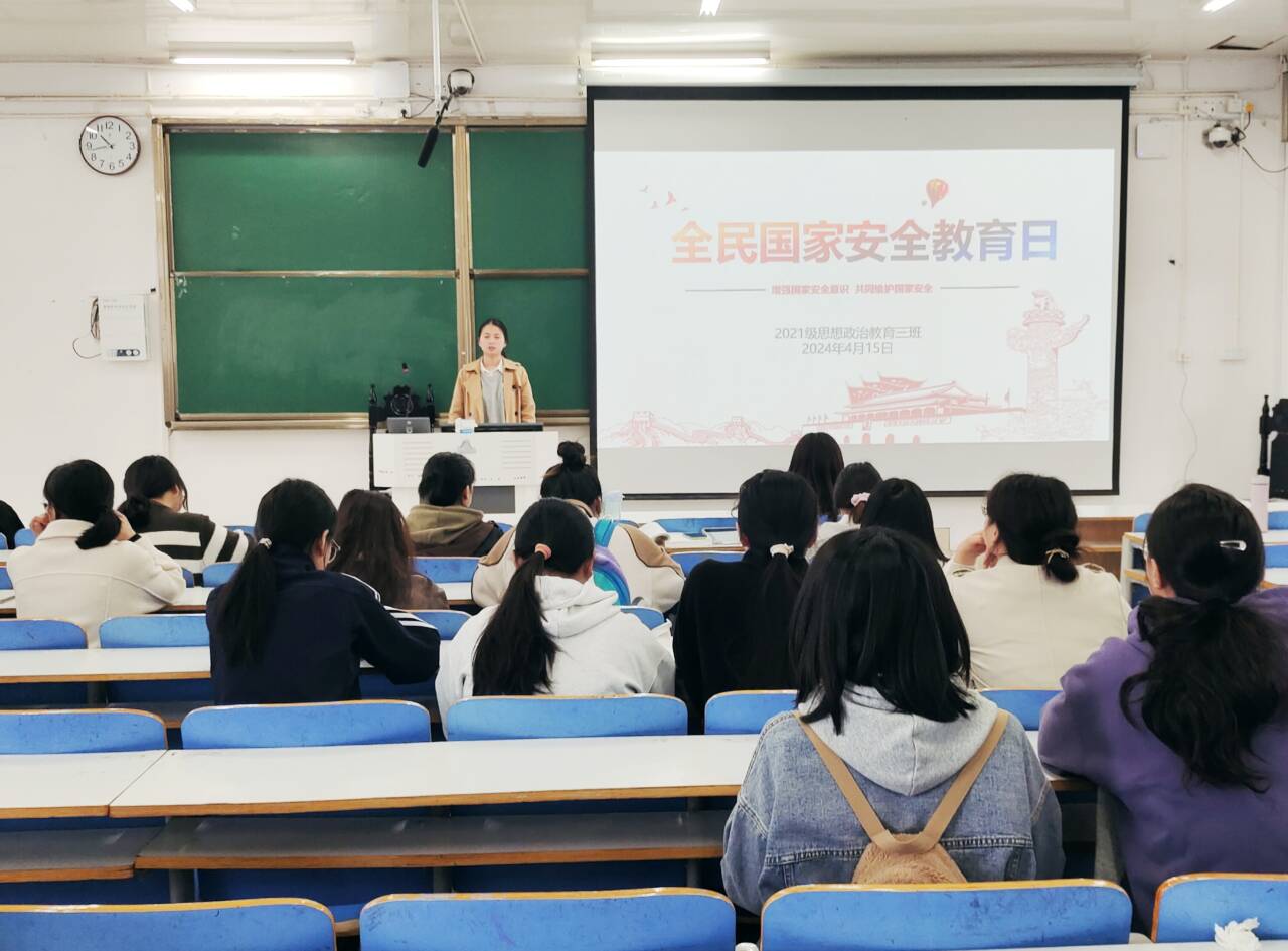 4月15日上午,beat365在线唯一官网2021级思想政治教育三班在社科楼514召开“全民国家安全教育日”主题班会。beat365在线唯一官网2021级思想政治教育三班全体成员参与本次会议。班会由副班长易从漫主持。
