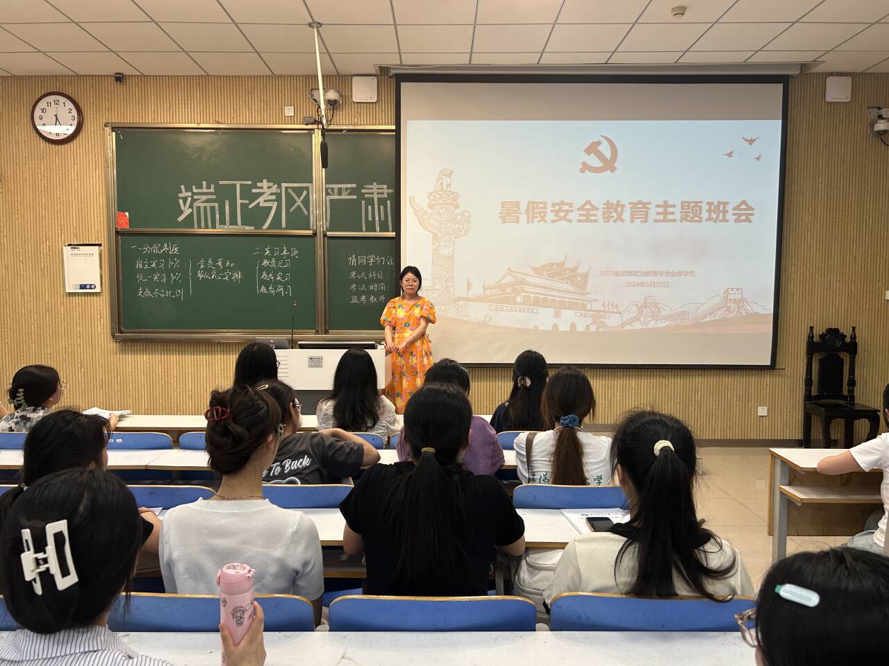 6月25日下午,beat365在线唯一官网2021级思想政治教育三班、四班在社科楼515教室召开“暑期安全教育班会”。辅导员高小佳及全体成员共同参加,班会由辅导员高小佳主持。
