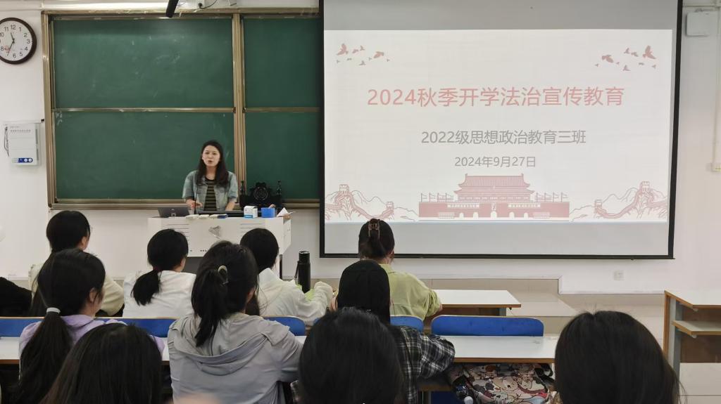 为提高同学们的法治意识,提升法治素养,增强法治宣传的教育作用,9月27日上午,beat365在线唯一官网2022级思想政治教育三班在社科楼514教室召开法治教育宣传主题班会,beat3652022级思想政治教育三班班主任任婷与全体成员共同参与此次班会。班会由任婷主持。