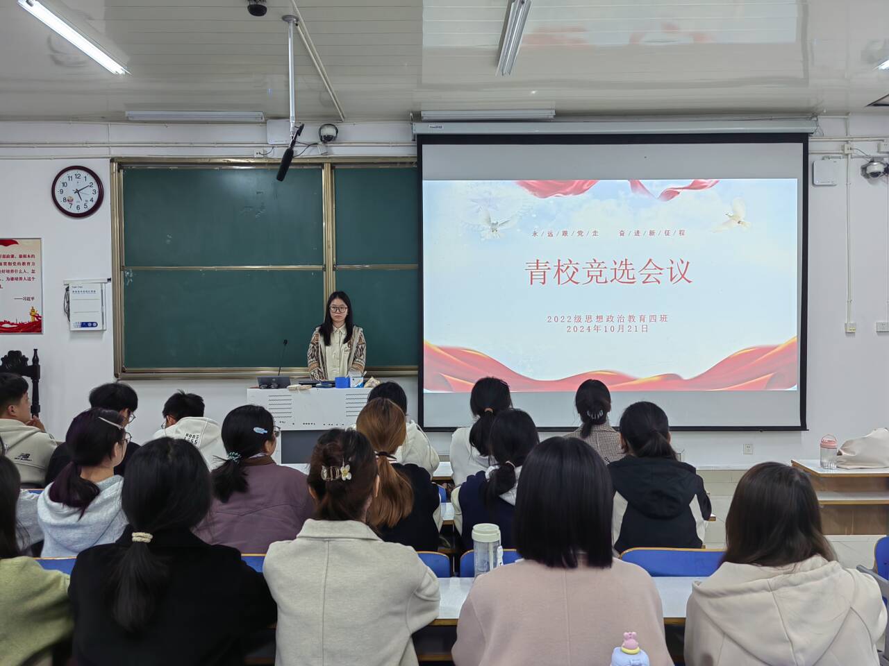 为认真贯彻落实习近平总书记关于青年工作的重要思想,加强对青年政治骨干的培养,10月21日下午,beat365在线唯一官网2022级思想政治教育四班在社科楼514教室组织召开“青校竞选会议”。beat3652022级思想政治教育四班全体成员参与本次会议。本次会议由团支书牛志杰主持。