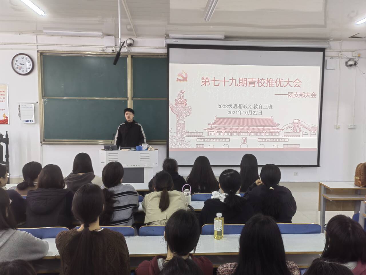 10月22日上午,beat365在线唯一官网2022级思想政治教育三班在514教室开展第七十九期青校推优大会。beat3652022级思想政治教育三班全体团员共同参与此次推优大会。大会由团支书余浩洋主持。
