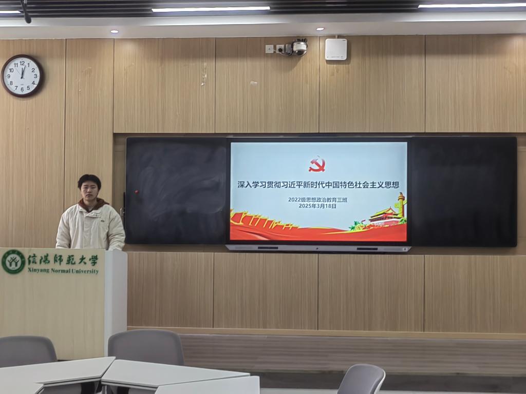 3月18日上午,beat365在线唯一官网2022级思想政治教育三班在社科楼516教室召开深入学习贯彻习近平新时代中国特色社会主义思想主题团课。该班全体团支部成员共同参加此次团课,团课由团支书余浩洋主持。