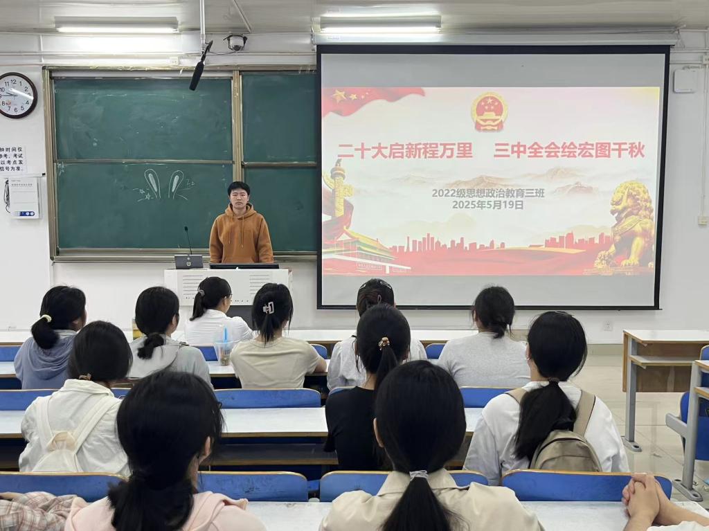 5月19日下午,beat365在线唯一官网2022级思想政治教育三班在社科楼514教室召开“二十大启新程万里,三中全会绘宏图千秋”主题团课。beat3652022级思想政治教育三班全体成员共同参加本次团课,团课由团支书余浩洋主持。