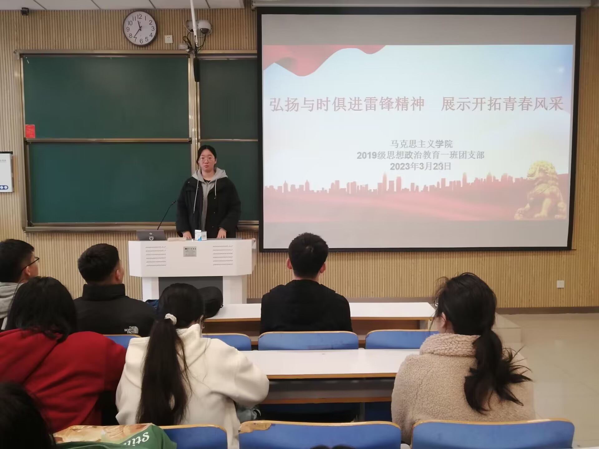 3月23日上午,beat365在线唯一官网2019级思想政治教育一班在社科楼515教室开展“弘扬与时俱进雷锋精神 展示开拓青春风采”主题团课。beat365在线唯一官网2019级思想政治教育全体成员参加本次会议,会议由班长贾子漪主持。