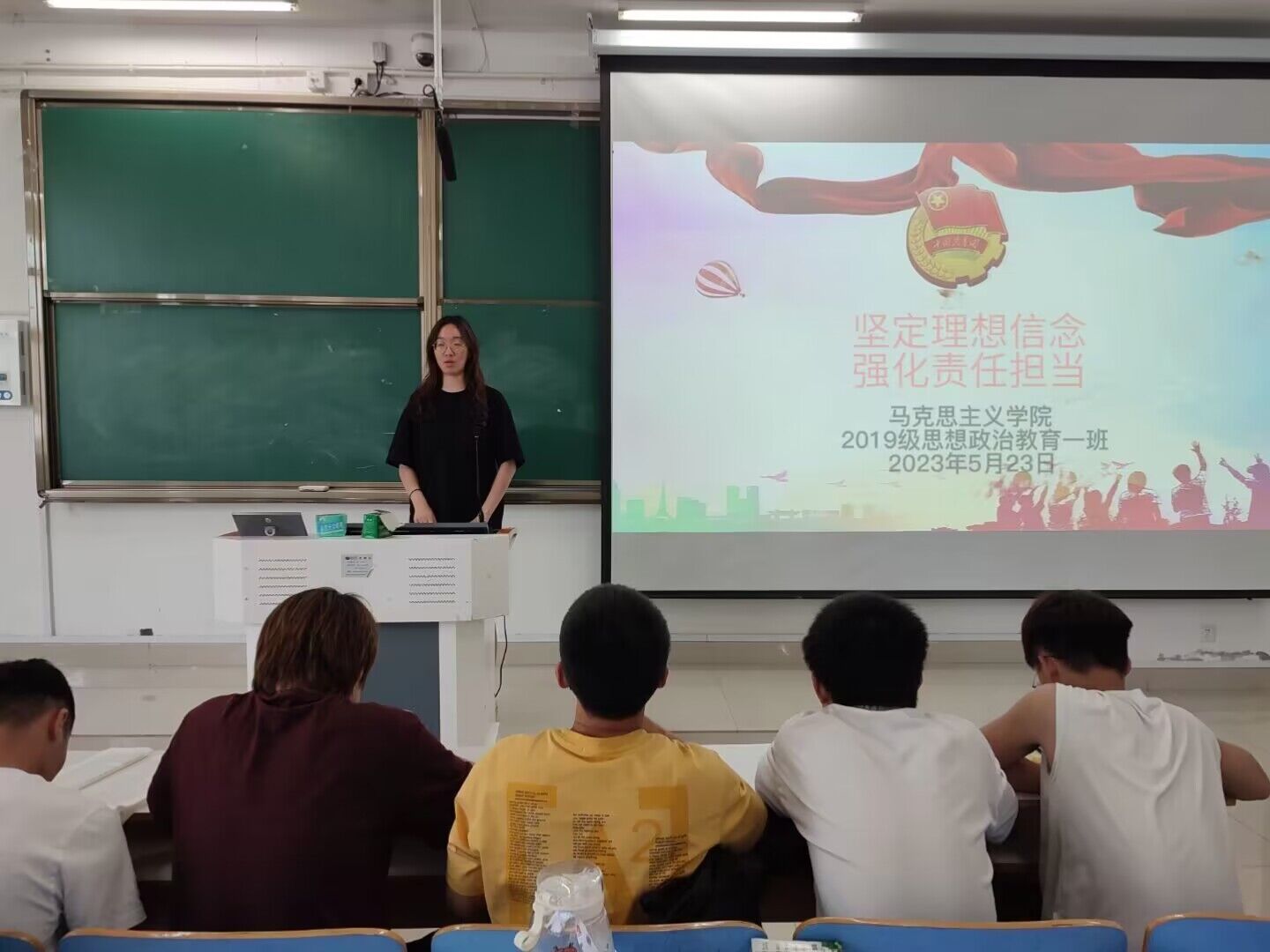 5月23日,beat365在线唯一官网2019级思想政治教育一班团支部在社科楼514教室召开“坚定理想信念,强化责任担当”主题团课。beat365在线唯一官网2019级思想政治教育一班全体团员参加本次团课。团课由团支书贾子漪主持。