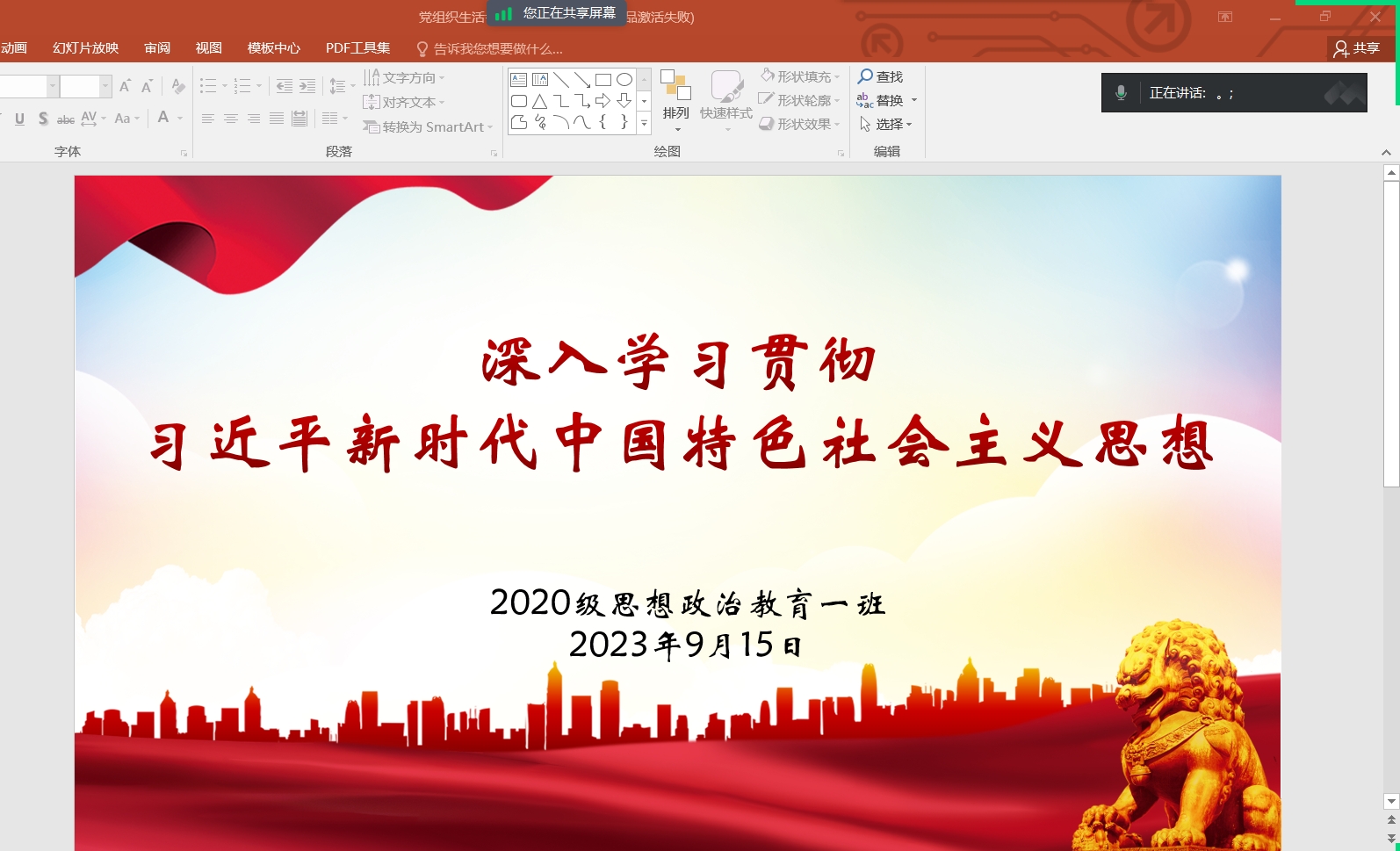为深入学习贯彻习近平新时代中国特色社会主义思想,9月15日下午,beat365在线唯一官网2020级思想政治教育一班团支部在腾讯会议开展“深入学习贯彻习近平新时代中国特色社会主义思想”主题团课,2020级思想政治教育一班全体团员参加了本次团课,团课由团支部书记卢茜雨主持。