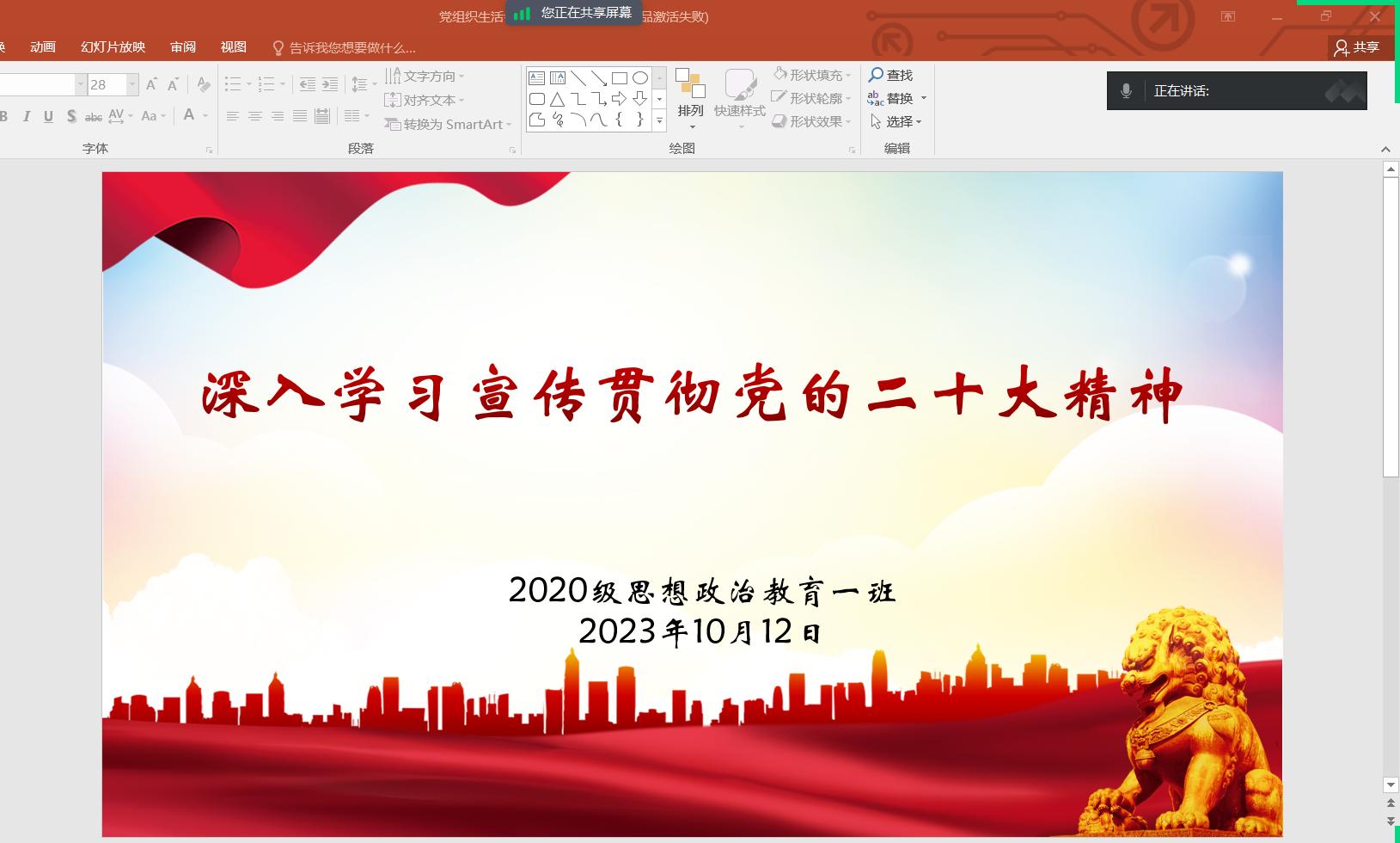 10月12日下午,beat365在线唯一官网2020级思想政治教育一班在社科楼教室开展“深入学习宣传贯彻党的二十大精神”团支部大会,会议由班长白帅豪主持。