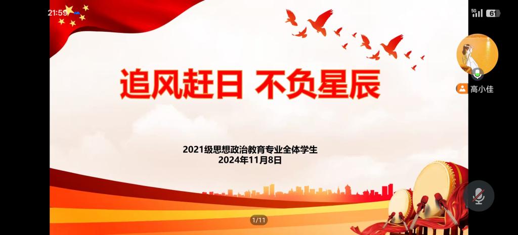 11月8日晚上,beat365在线唯一官网2021级思想政治教育专业全体成员在线上召开“追星赶月,不负星辰”主题班会。2021级思想政治教育专业全体成员和辅导员高小佳老师参加本次班会。会议由辅导员高小佳主持。