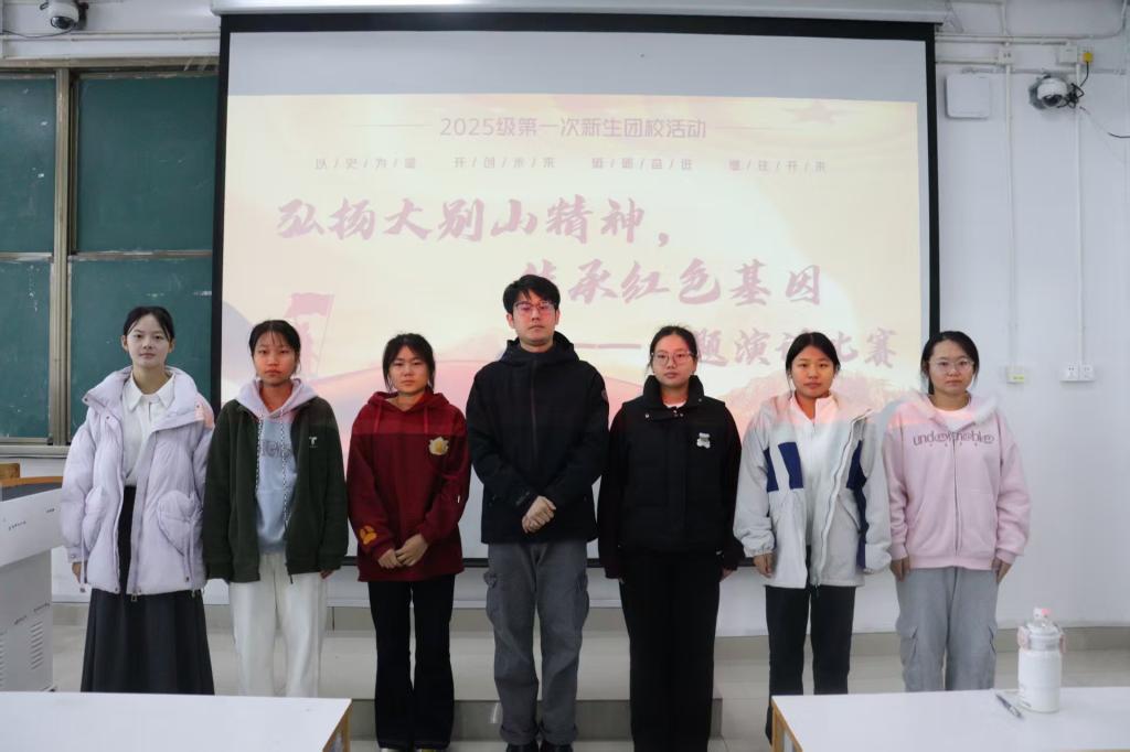 为深入学习红色文化、传承大别山精神,beat365在线唯一官网于10月21日在社科楼514教室举办了“弘扬大别山精神,传承红色基因”主题演讲比赛暨2025级新生第一次团校活动。此次活动由团委老师沈海蓄以及主席团成员担任评委,学生代表李琛主持。