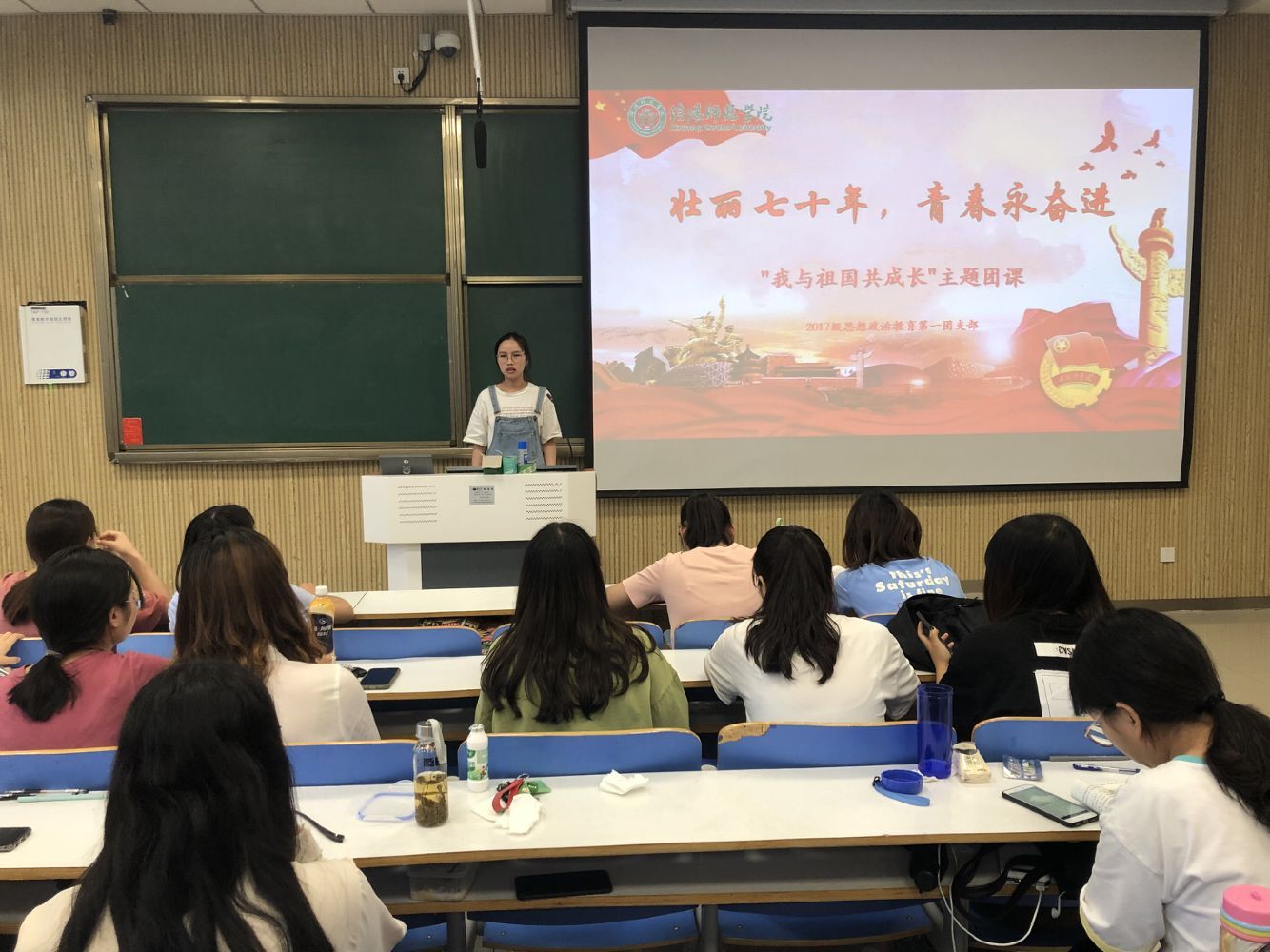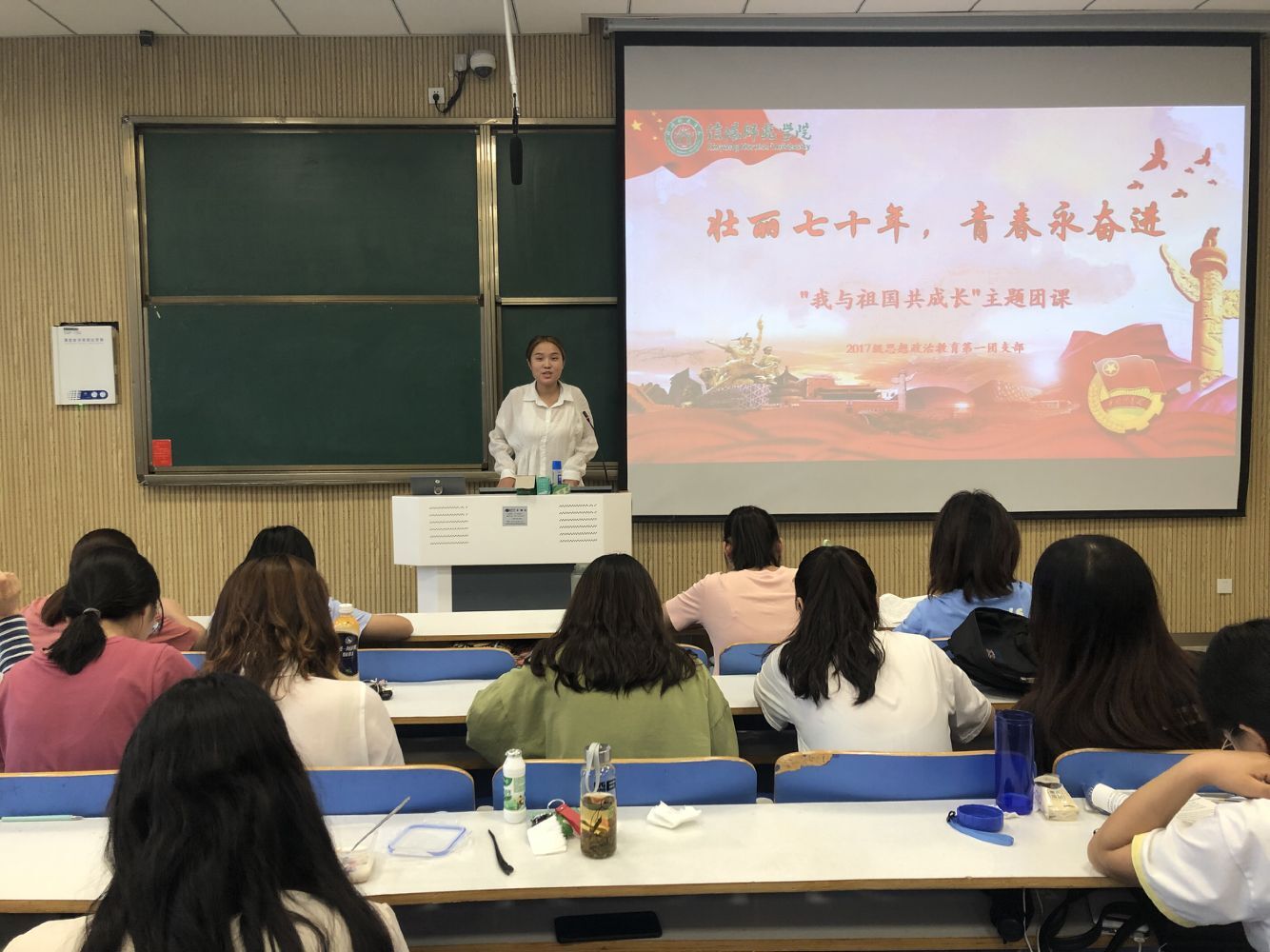 为庆祝新中国成立七十周年,大力弘扬爱国主义精神,9月26日下午,beat365在线唯一官网2017级思想政治教育第一团支部在社科楼515教室开展“壮丽七十年,青春永奋进—我与祖国共成长”主题团课活动,本次活动由吴亦昕主持。